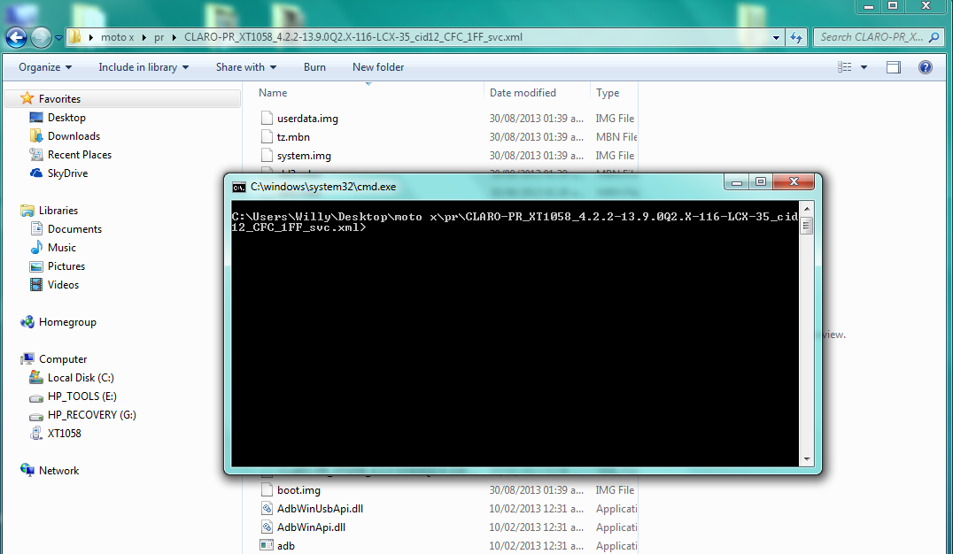- Como podemos apreciar dentro de esta carpeta que llamé "pr" esta el contendido del firmware + el Moto X Install Kit