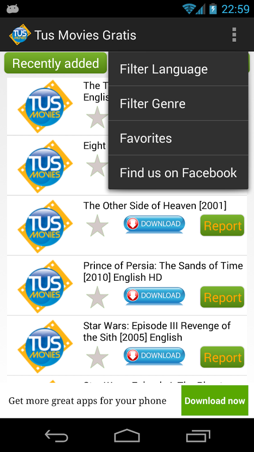 Tus Movies Gratis es muy sencilla de utilizar, pesa solo 1MB y es ideal para dispositivos de gama Baja-Media, para disfrutar de una película solo debes abrir la app, deslizar la lista de películas, tocar tu película favorita y disfrutar, mas facil imposible :) además si lo deseas puedes descargar la película a tu teléfono, aunque la descarga no siempre esta garantizada.